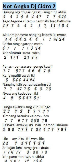 D A tego-tegone sliramu. Chord Lagu Chord Kunci Gitar Lirik Cidro 2 Panas Panase Srengenge Kuwi - Esa Risty ft Wandra Viral Tiktok Berikut Chord Kunci Gitar dan Lirik Lagu Cidro 2 yang dipopulerkan oleh Esa Risty feat Wandra. Andros Los Bandros - Kuli No Cidro Chord Gitar dan Lirik Lagu 1 bulan yang lalu 5 views - - Intro.