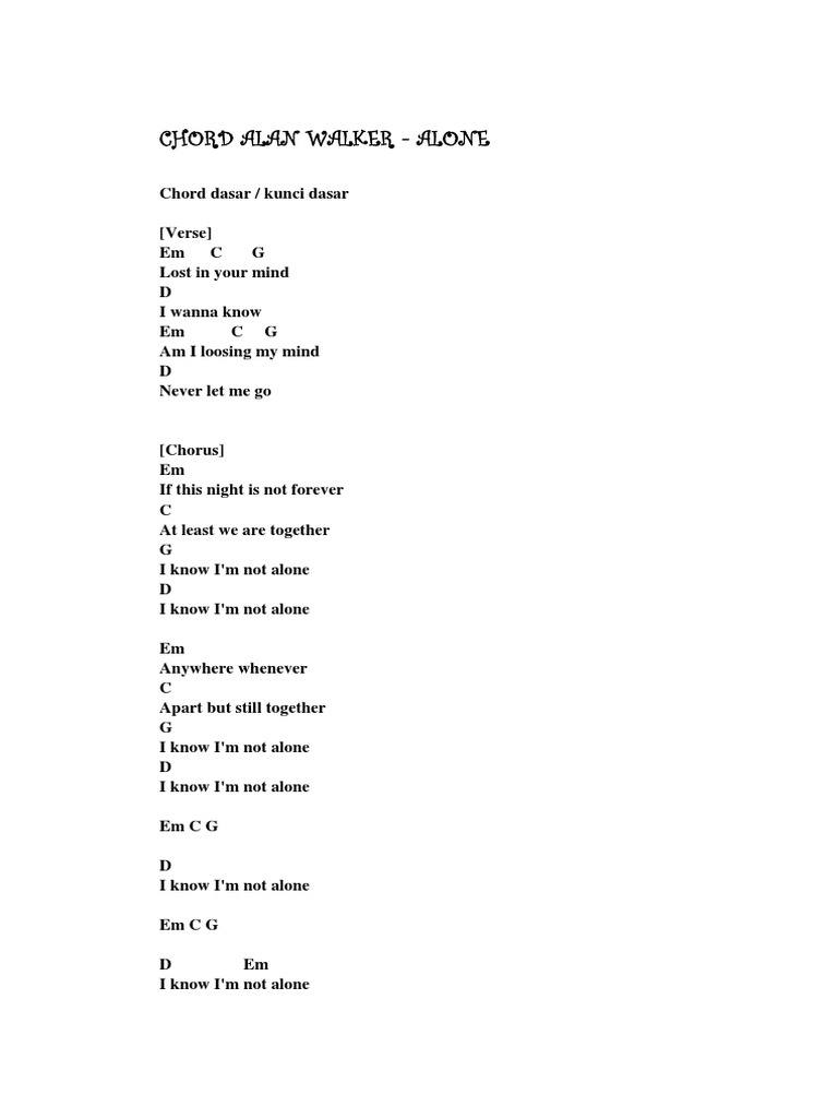 Chord gitar alan walker alone. Chord Gitar End Of Time - K-391 Alan Walker Ahrix lyric Things are right That you just know There is something in your eyes. Alan Walker. Chord Kunci Gitar Alan Walker Alone.