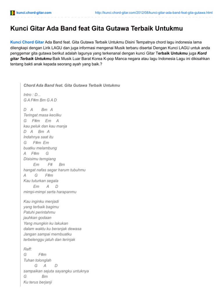 Kunci Gitar Ada Band Feat Gita Gutawa Terbaik Untukmu Pdf