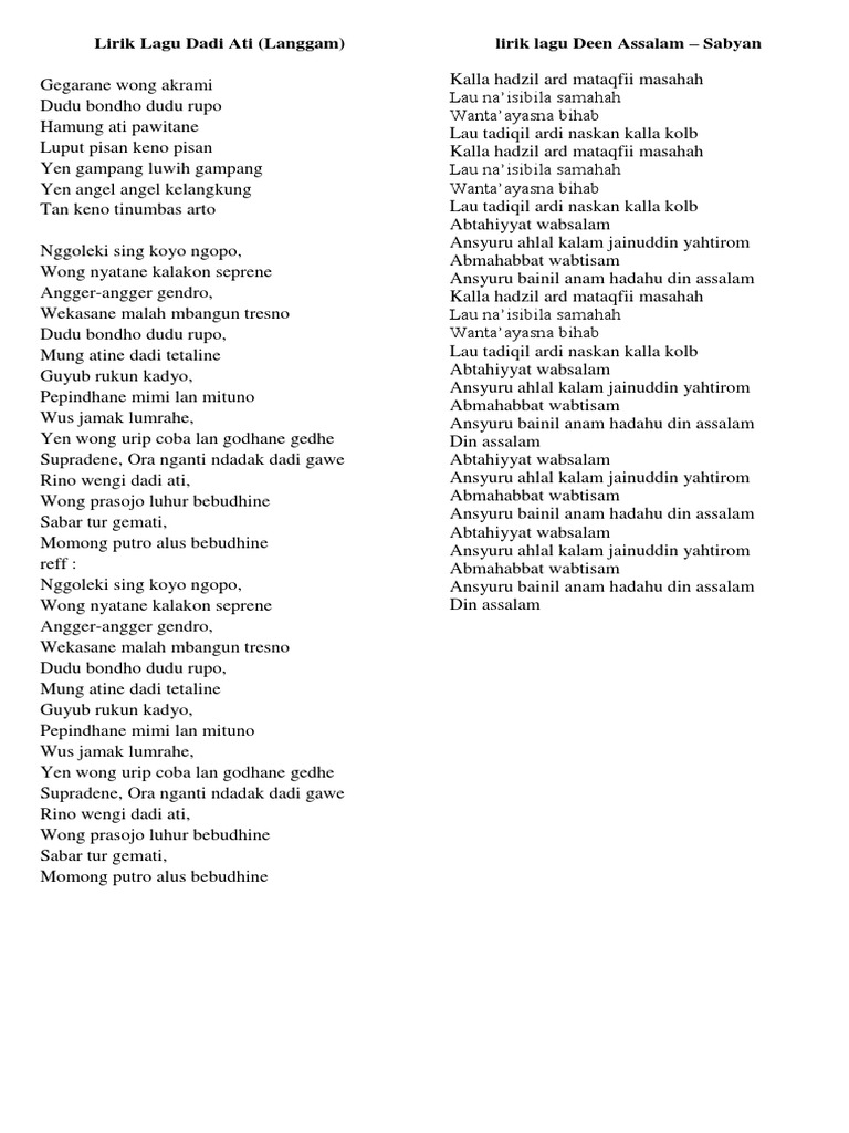 Karaoke Dadi Ati Tanpa Vokal Lirik Syair Lagu Gending Langgam Jawa Campursari Chords Chordify