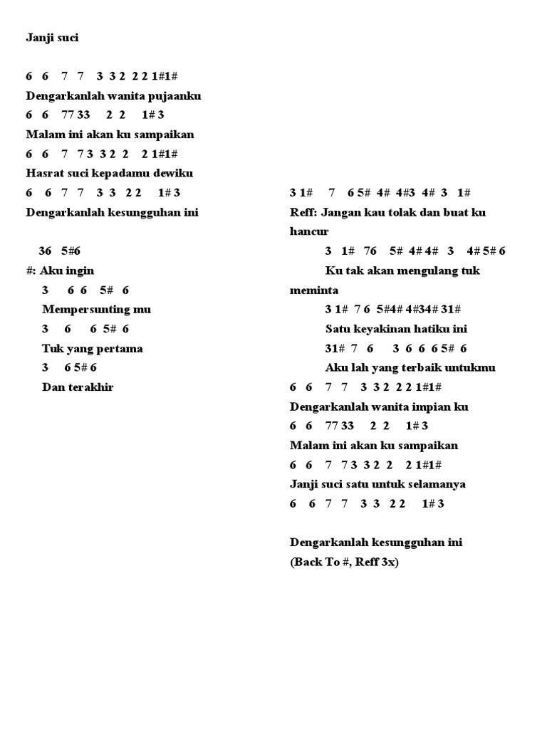 Not Angka Lagu Janji Suci Belajar Not Angka Mengikuti Musik Youtube