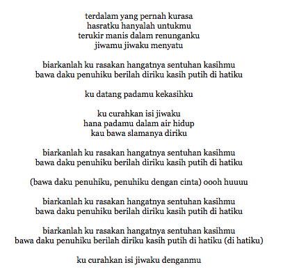 Kasih putih A D dihatiku Fm G Kutemukan tempat dihidupku. D A G 2x G. D Fm G biarkanlah kurasakan F Bm A G A hangatnya sentuhan kasihmu D Fm G bawa daku penuhiku F Bm A G Fm Em berilah diriku.