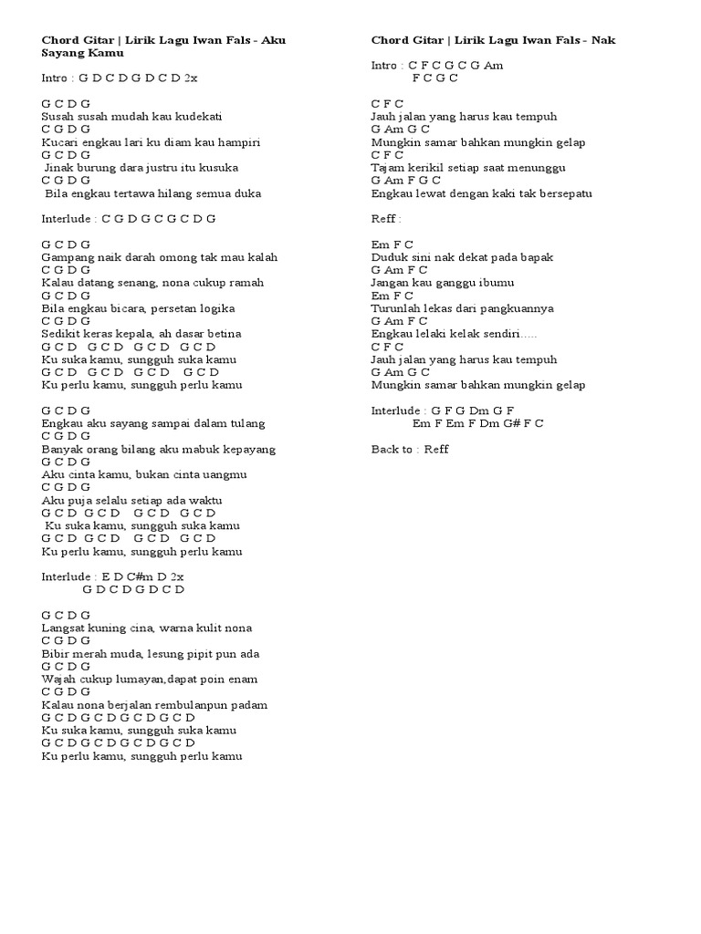 Koleksi Lirik Lagu Plus Kunci Gitar Chord Gitar Iwan Fals Yang Terlupakan Pdf