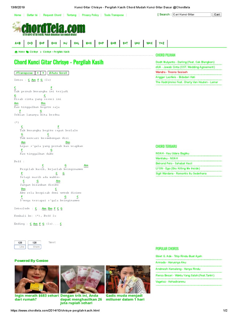 Chord Gitar Lagu Pergilah Kasih Chrisye Kunci Mudah Dari G Pergilah Kasih Kejarlah Keinginanmu Tribunnews Com Mobile