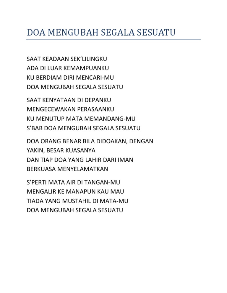 Doc Lirik Lagu Doa Mengubah Segala Sesuatu Nancy Botter Academia Edu