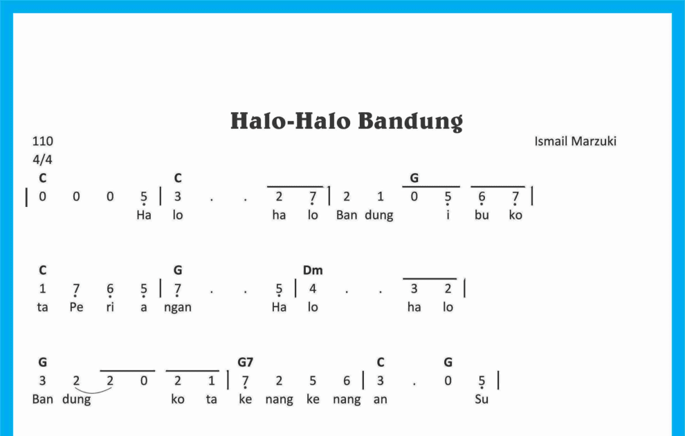 Lirik Lagu Halo Halo Bandung Beserta Not Angka