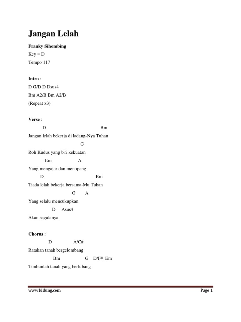Jangan Lelah Pdf Jangan Lelah Franky Sihombing Key D Tempo 117 Intro D G D D Dsus4 Bm A2 B Bm A2 B Repeat X3 Verse D Bm Jangan Lelah Bekerja Di Course Hero