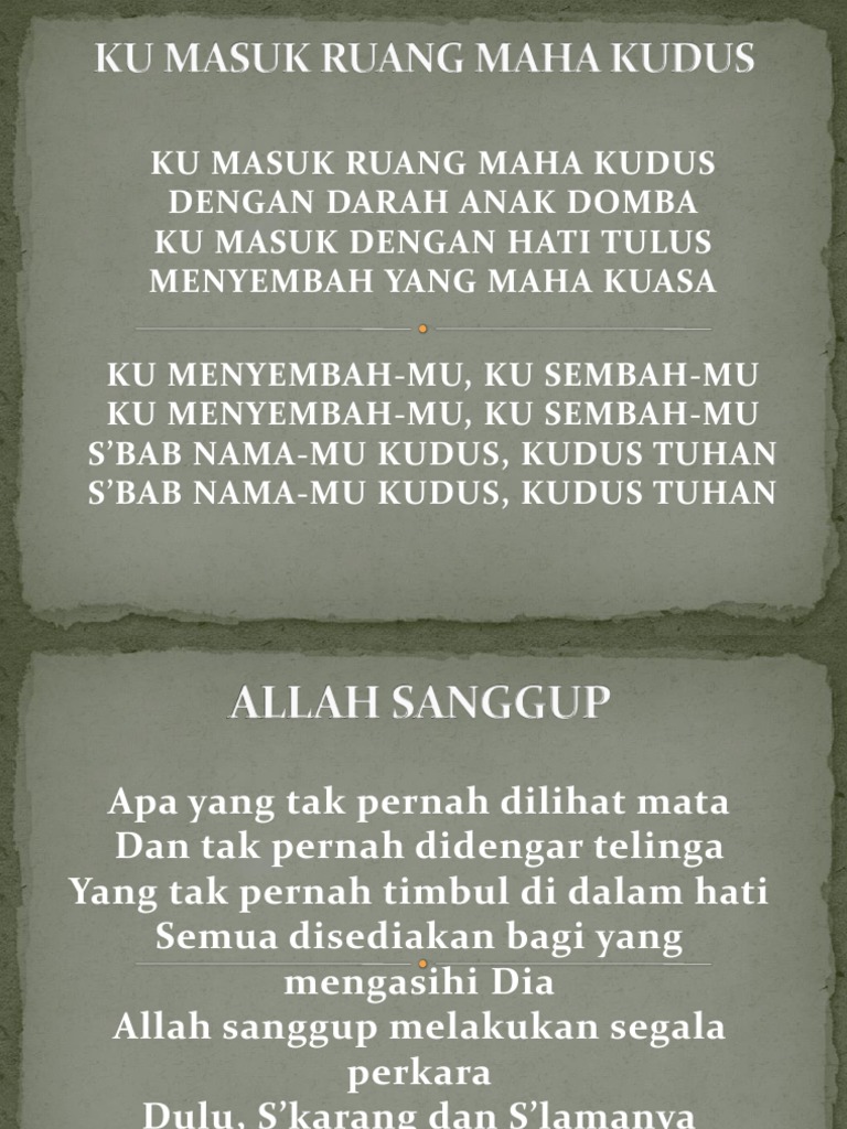 Kumasuk ruang Maha Kudus. Menyembah Yang Maha Kuasa. Chord Gitar Lirik lagu lainnya dari LAGU ROHANI.