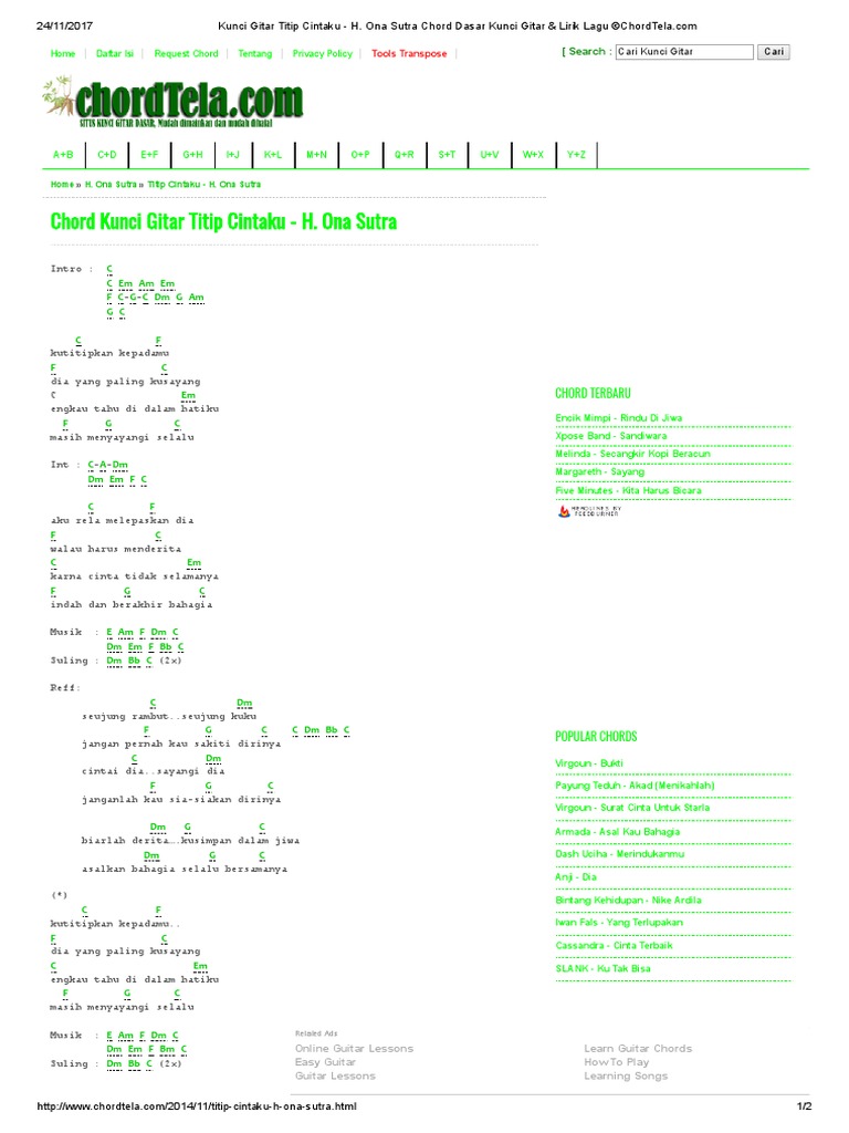 Kunci Gitar Titip Cintaku H Ona Sutra Chord Dasar Kunci Gitar Lirik Lagu C Chordtela Pdf