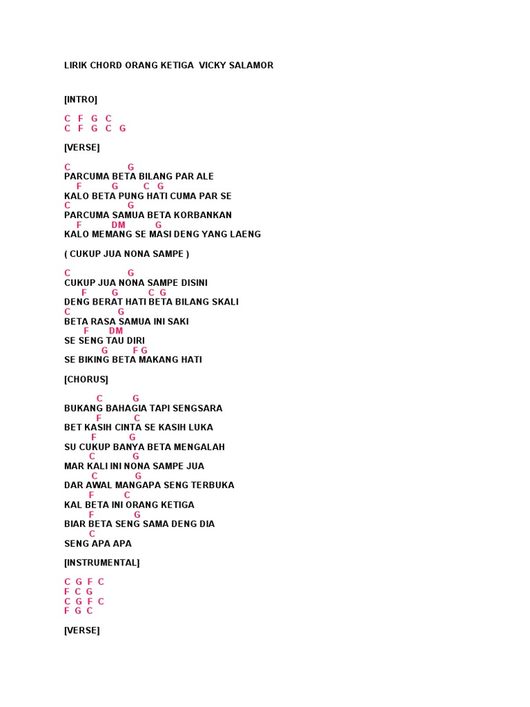 Lirik Chord Orang Ketiga Vicky Salamor Pdf