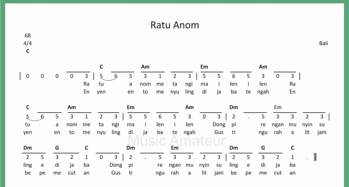 Kunci gitar ratu anom. Dia sela G lu ada waktu untuk memb C antuku. Not Angka Pianika Lagu Indonesia Pusaka - Ismail Marzuki not lagu indonesia tanah air beta Lagu Not musik Pianika Not Angka Lagu Indonesia Pusaka Ismail Marzuki Berikut Lirik Chord. Di C a amat manis dan juga Dm baik hati.