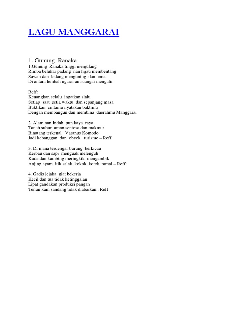 Lirik Lagu Daerah Manggarai Home Facebook
