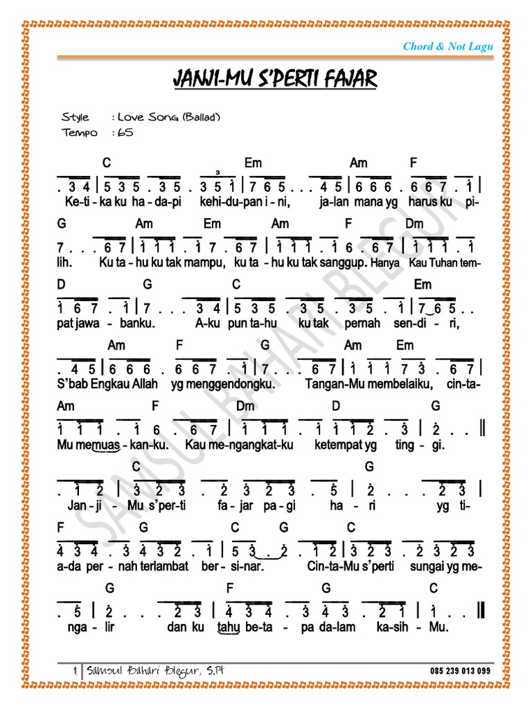 Lirik lagu janjimu seperti fajar. Aku Pun Tahu Ku Tak Pernah Sendiri. Semula lagu ini akan disimpan untuk pribadi saja. Dilengkapi dengan Lirik lagu Not lagu serta instrumen pendukung untuk memudahkan mempelajari lagu-lagu.