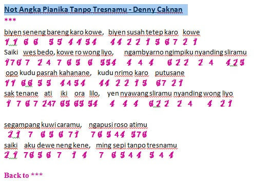 Not Angka Lagu Tanpo Tresnamu Denny Caknan Dunia Lirik Not Lagu