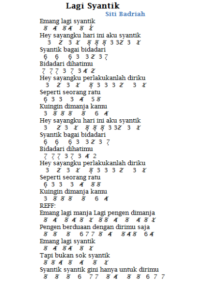 Bismillah ya Dzal Jalali Wal Ikrom. Not Angka Pianika Lagu Pergilah Kasih - DMasiv- Buat kalian yang Hobi Bermain Musik Piano Pianika Biola. Teks lengkap lirik lagu bismillah tawassalna billah - tawakkaltu ala allah latin dan terjamah bahasa indonesia.
