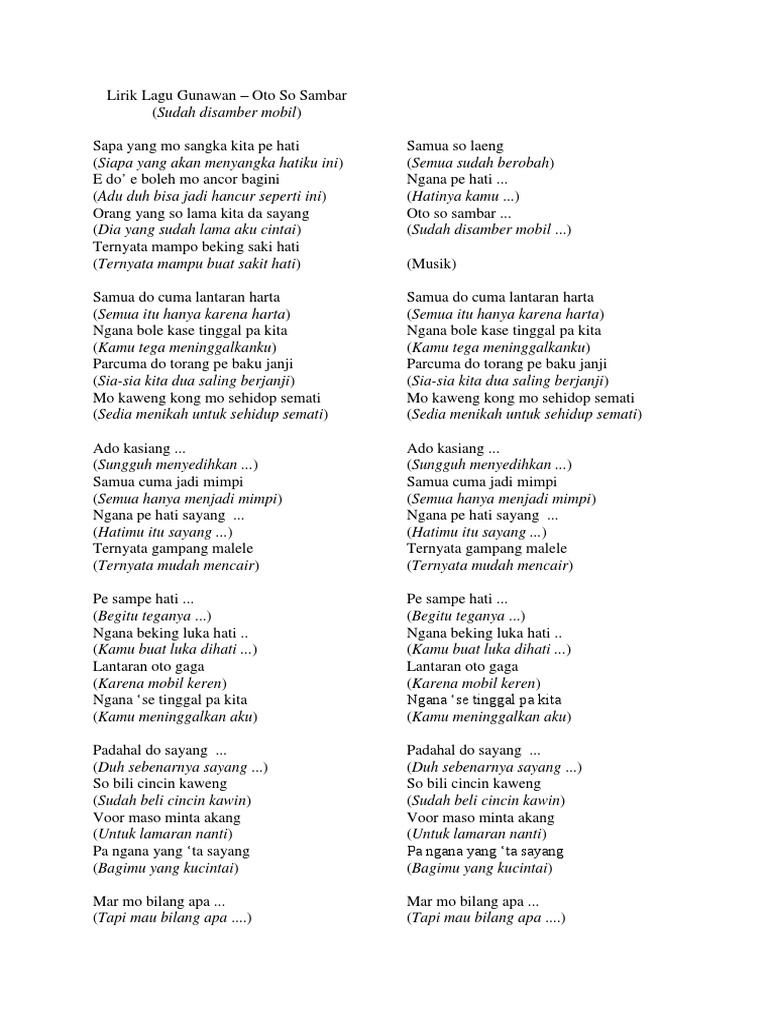 Lirik Lagu Gunawan Oto So Sambar Lagu Pop Manado Pdf