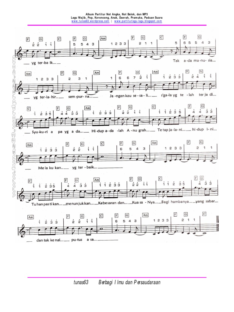 Partitur not angka chord dan notasi angka. Cobaan atau ujian hidup bukan untuk disesali melainkan harus dihadapi dengan sabar dan segala upaya yang pantang menyerah. Mengirimkan alamat Email Biayanya di transfer di.
