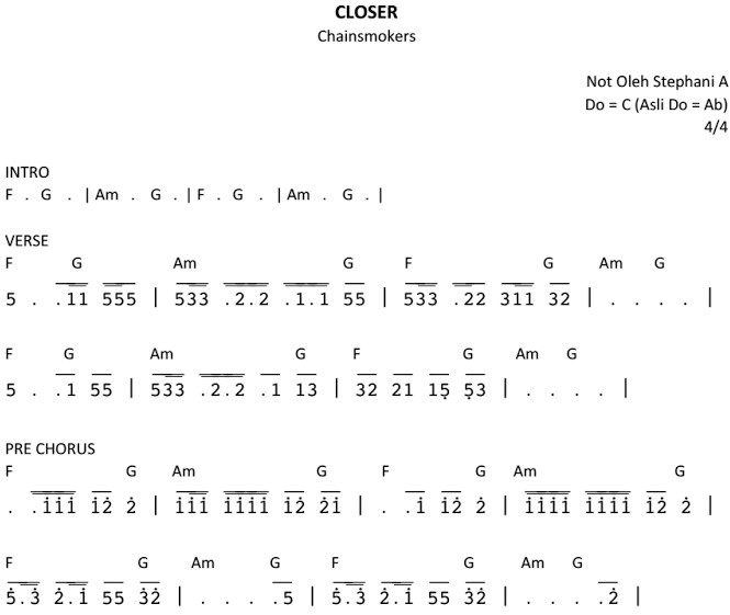Not Angka Lagu Chainsmokers Closer Chord Gitarran