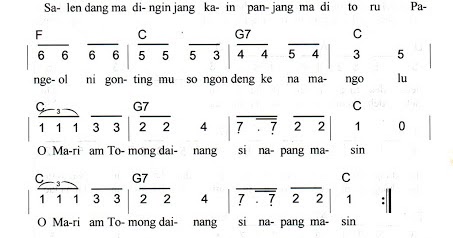 Not angka lagu Mariam Tomong dan not balok lagu Mariam Tomong dilengkapi chords dan audio untuk mendengar melodi lagunya. Tersimpan dalam namatersimpan dalam nama. Apa isiarti dari lagu Mariam Tomong.